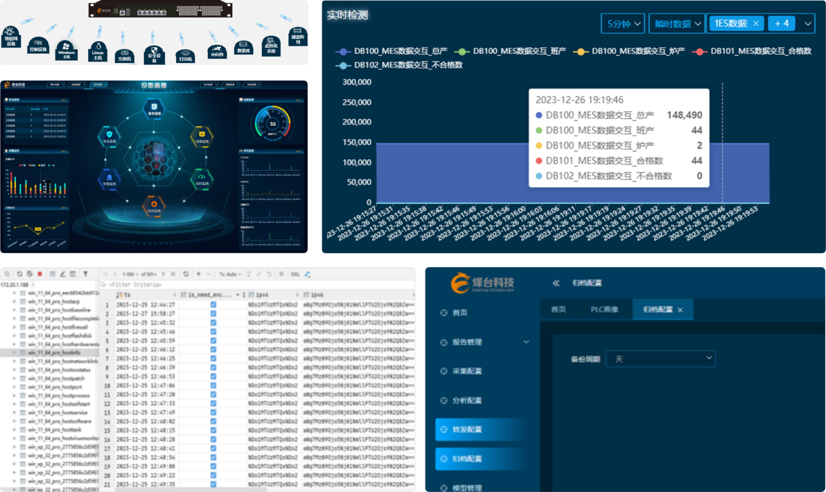 支持采集设备的运转数据、事情数据、日志数据,支持厂商70多家,产品100多种,日志900多类。其中可以采集的PLC设备覆盖了市面上全部主流厂商,包括西门子、施耐德、欧姆龙等,采集型号多达十几种。